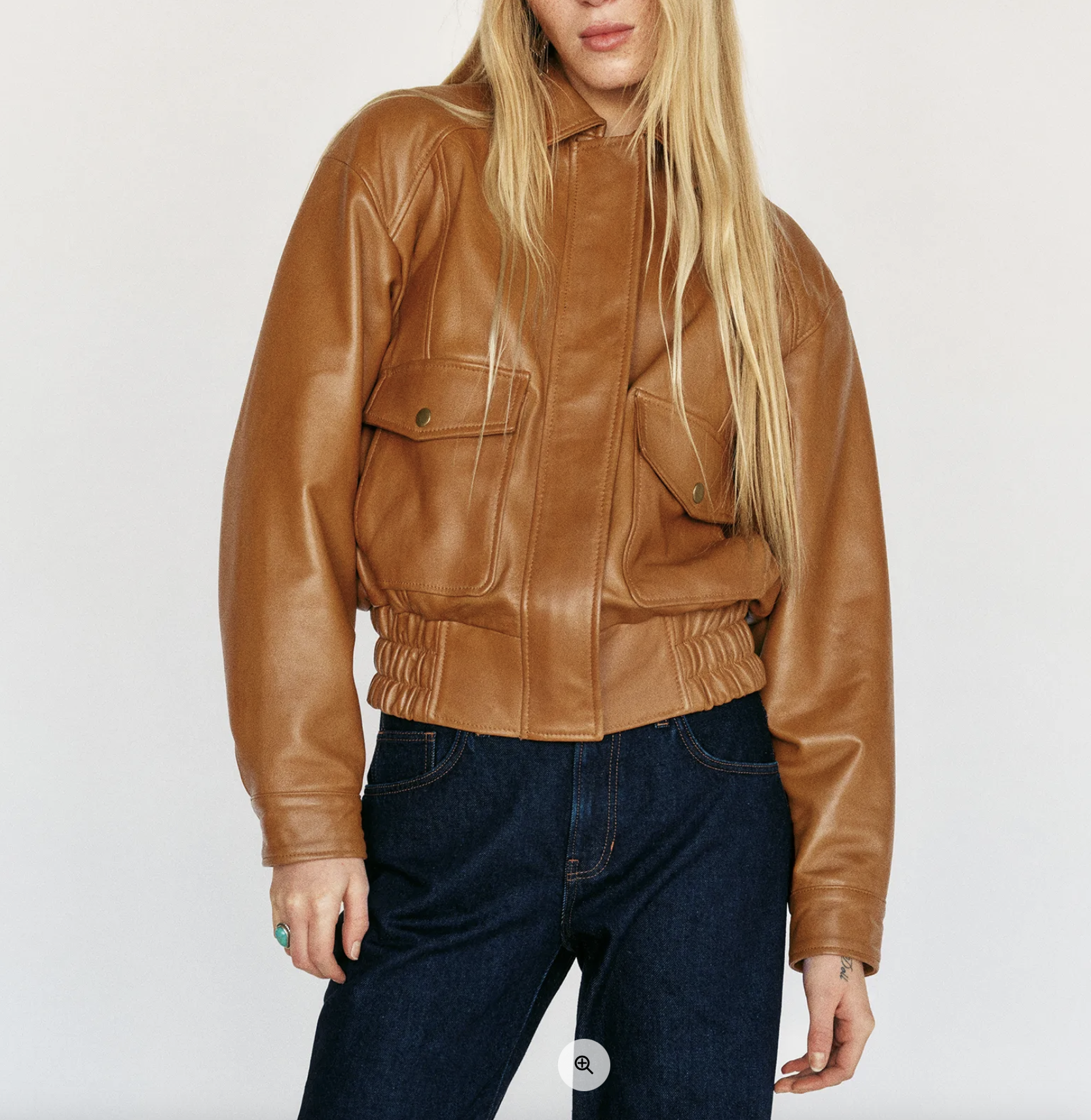 • Leather cuffs instead of rib cuffs (as in the mockup and reference)